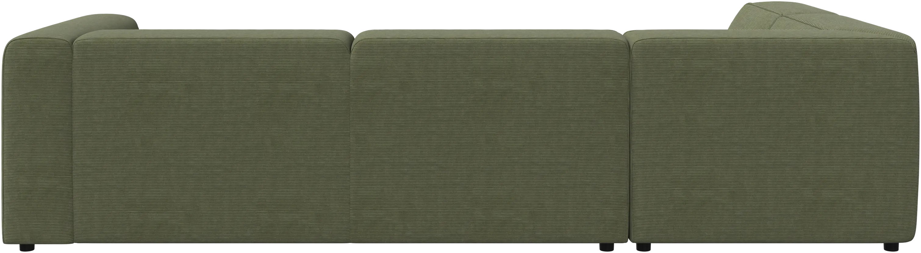 The low comfortable back has the same height as the armrest, giving a fantastic seating comfort, especially in the corner.