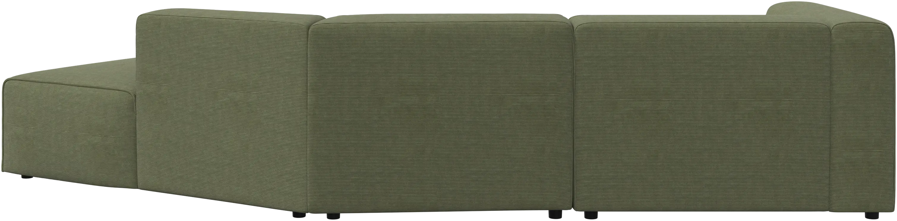 The low comfortable back has the same height as the armrest, giving a fantastic seating comfort, especially in the corner.